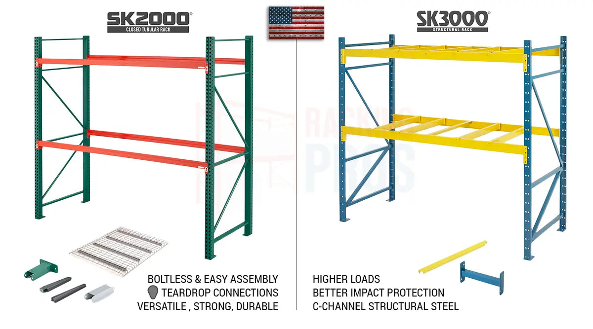 Preconfigured kits are easy-to-assemble and contain all of the necessary frames, beams, and hardware to properly install and create your perfect racking solution. Simply select a "Starter" kit and any additional "Add-On" kits to create the ideal racking row. Additional beams are also available to create additional levels of storage within your bays.