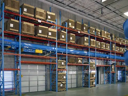 Push-back racking uses a system of nested carts that move along inclined rails. When a new pallet is loaded, it pushes the existing pallets back. This high-density storage system allows multiple pallets to be stored deep and accessed from the same aisle. It offers efficient use of space and is particularly useful for warehouses needing high selectivity and storage density. Push-back racking is excellent for managing a large volume of similar items while maintaining relatively easy access.