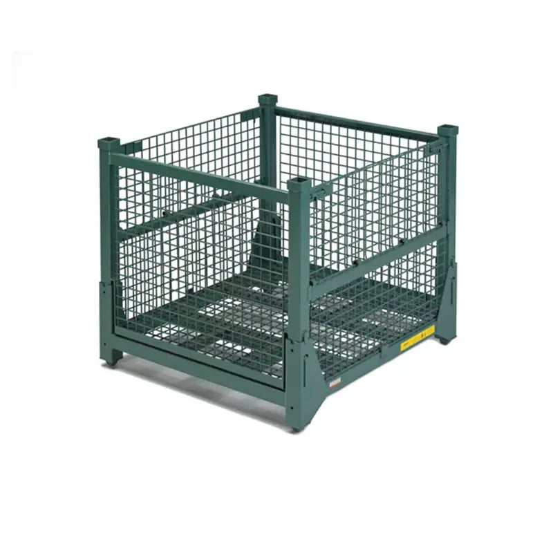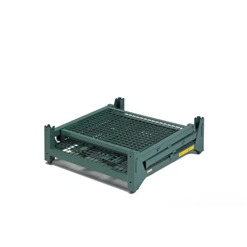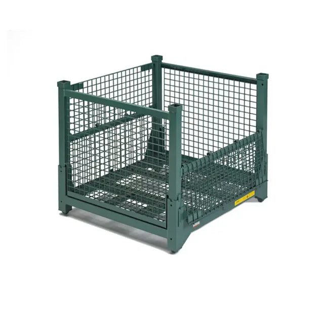 RP-HF4WM454842VG is a wire mesh 45" x 48" x 42" stackable and foldable steel container in our lineup of innovative and space-saving Hold ’n Fold industrial storage products, with a capacity of 4,000 lbs. per container. With the patented Hold ’n Fold container design you get three containers in the same space as one rigid container and easy-to-use flexibility in storing, staging, and transferring materials. Simply lift sides into position (they automatically lock in place) and it’s read to fill. Use Hold ’n Fold for intra-plant shipments and save shipping costs returning empty containers. Hold ’n Fold self-locks when folded, eliminating the need for banding.